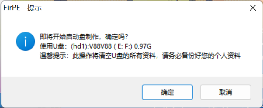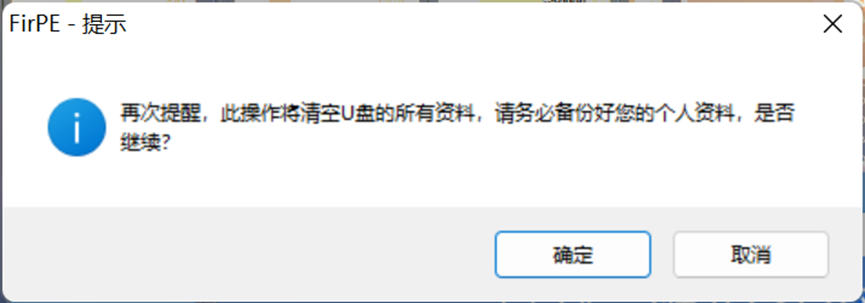 点击确定继续操作 (温馨提示:此操作将清空U盘的所有资料,请务必备份好您的个人资料)