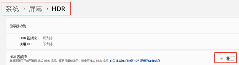 如若出现在Windows打开HDR的情况下安装了TITAN ARMY Widget PC Tool软件,且操作了PC软件情景模式显示器无响应的情况,请先手动关闭Windows HDR,在Windows任务栏右键关闭TITAN ARMY Widget PC Tool软件,再次重新打开TITAN ARMY Widget PC Tool软件即可控制显示器功能),HDR关闭如下图所示: