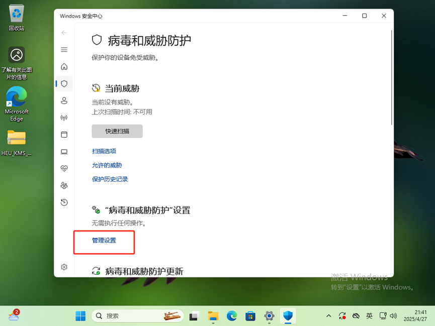 将里面的“病毒和威胁防护”设置都关掉,不开启。