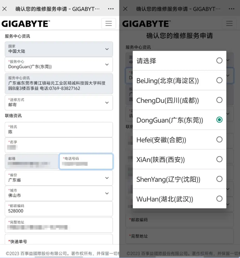 4.目前大陆一共有8个地区的服务中心可供选择,分别是北京、成都、东莞、合肥、西安、沈阳、武汉和乌鲁木齐。
