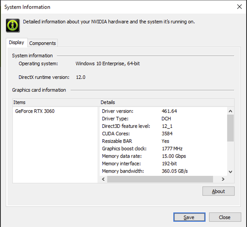 在您更新了所有组件并安装了我们的 Game Ready Driver 之后,您可以通过打开NVIDIA控制面板来验证 Resizable BAR 是否在您的系统上工作。 在NVIDIA控制面板的左下角,只需单击 “System Information”,然后在新窗口中查找右侧的 “Resizable BAR”。如果它显示 “Yes”,就说明已经设置好了。