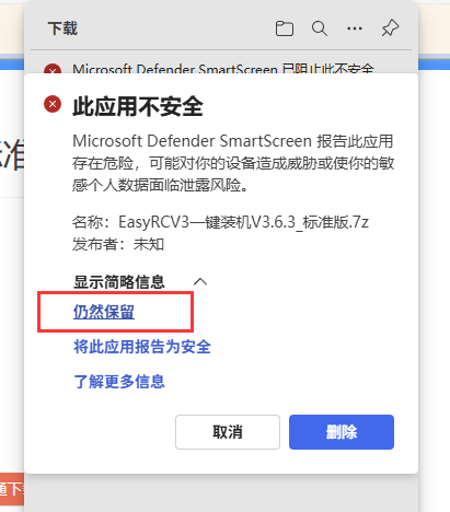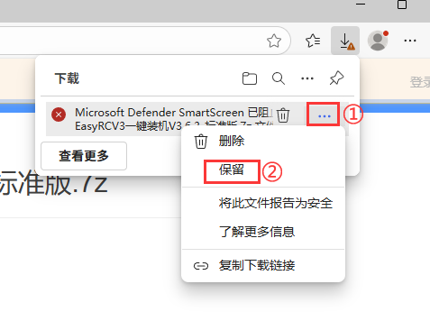 2.下载后如果提示被阻止,点击点击后面“ ··· ”,然后点击“保留”