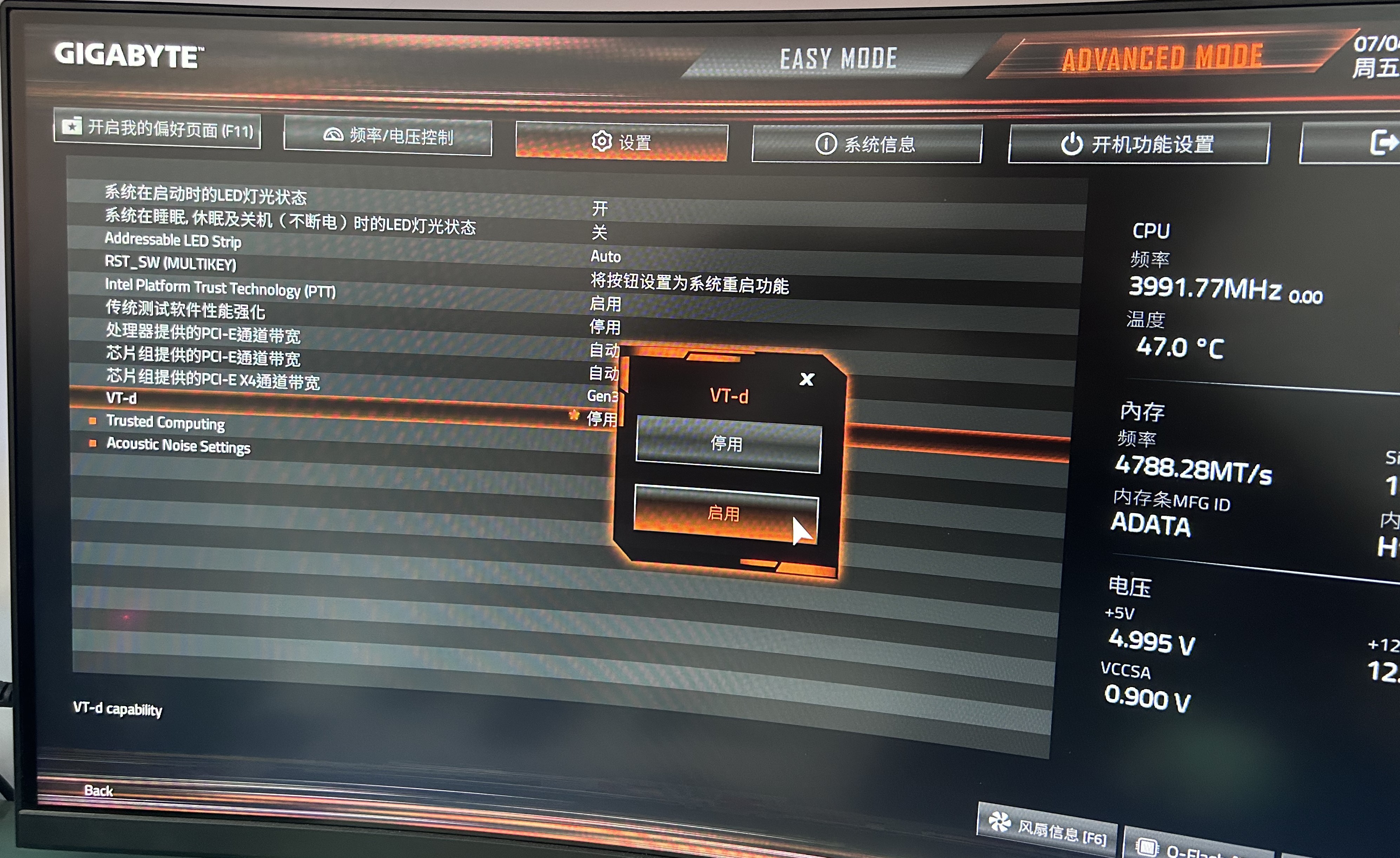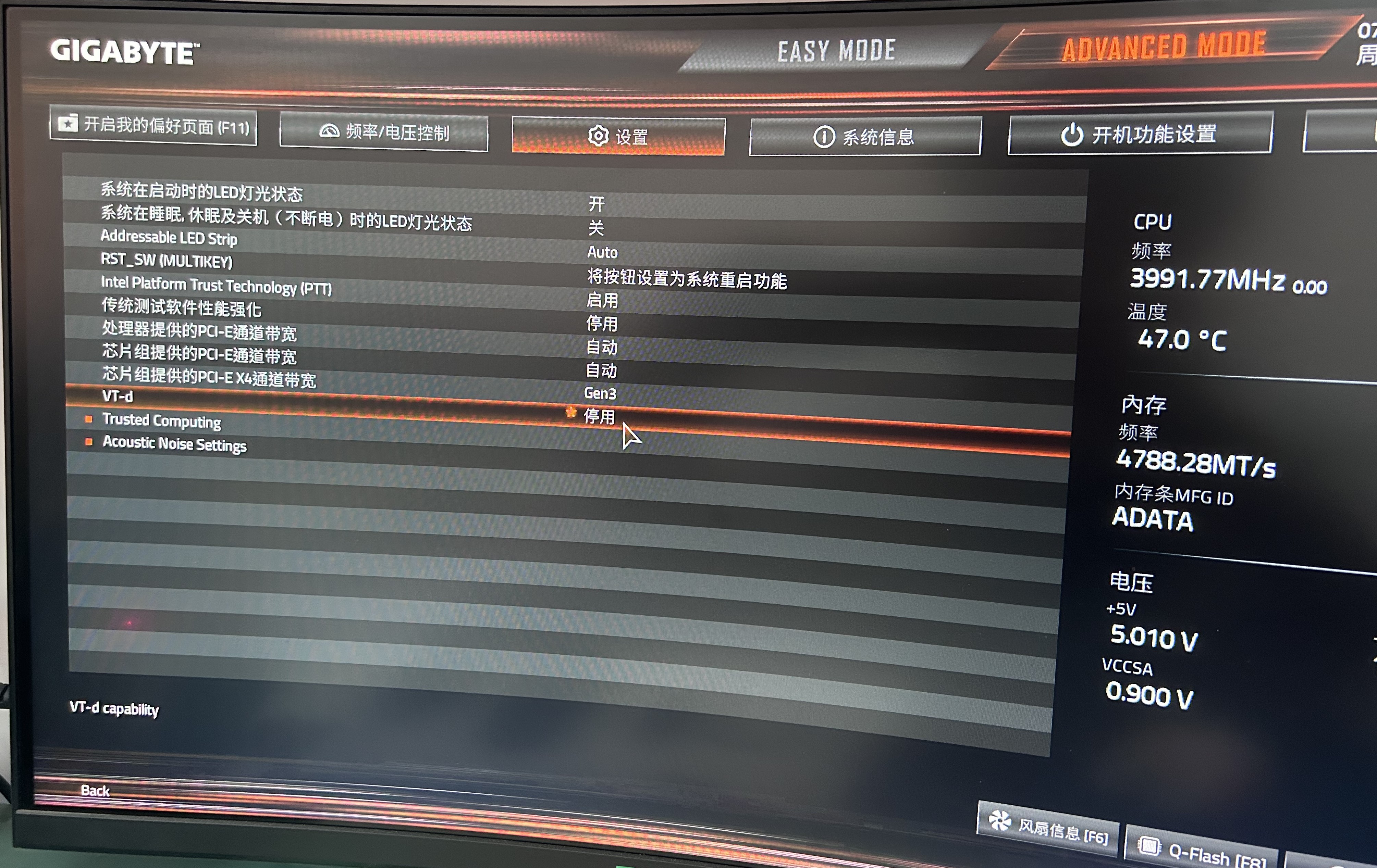 1、按电脑开机键后连续不停的按键盘DEL键进入主板BIOS,按F2进入高级设置