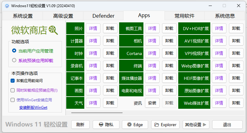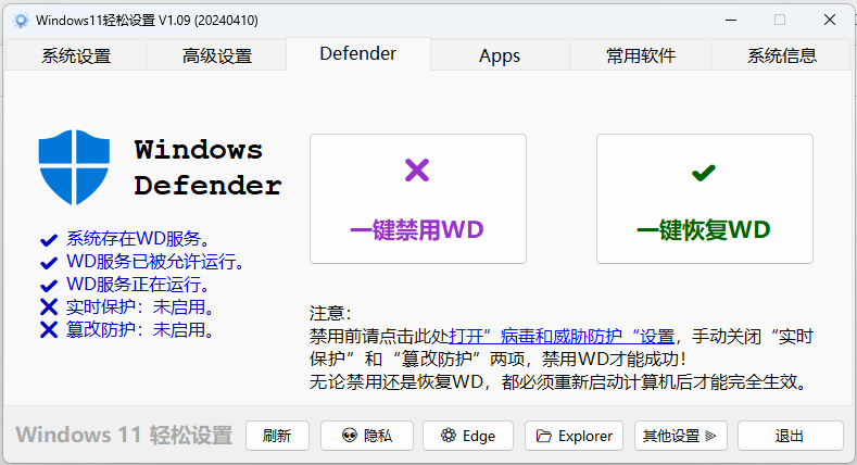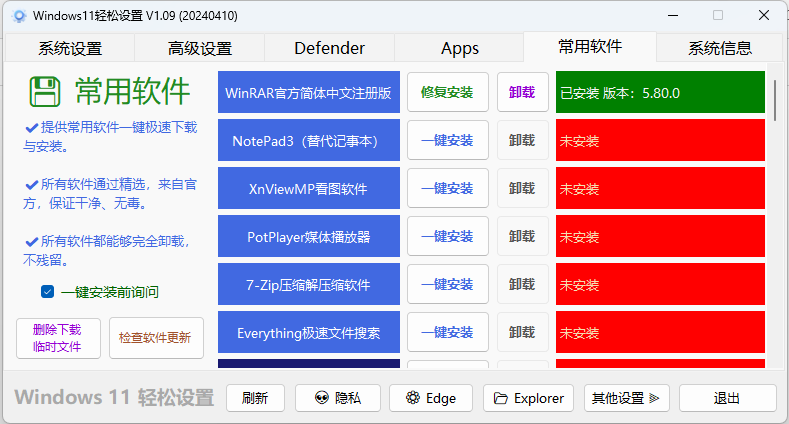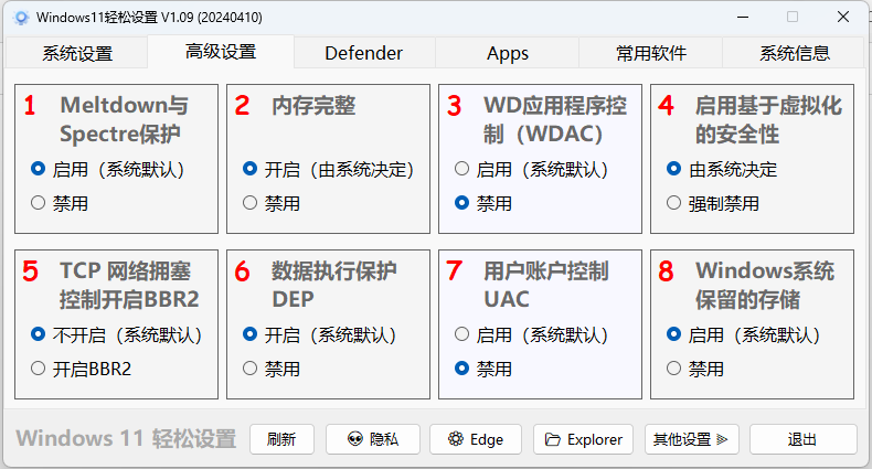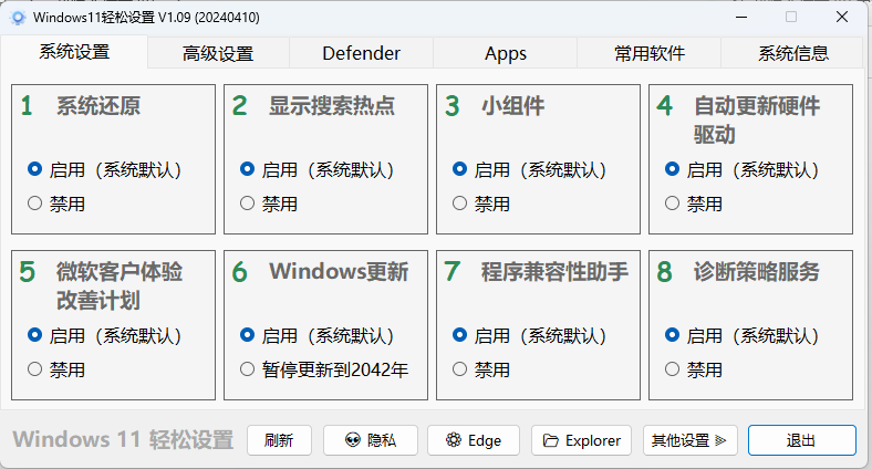 下载链接:Windows11轻松设置V1.09(20240410).zip