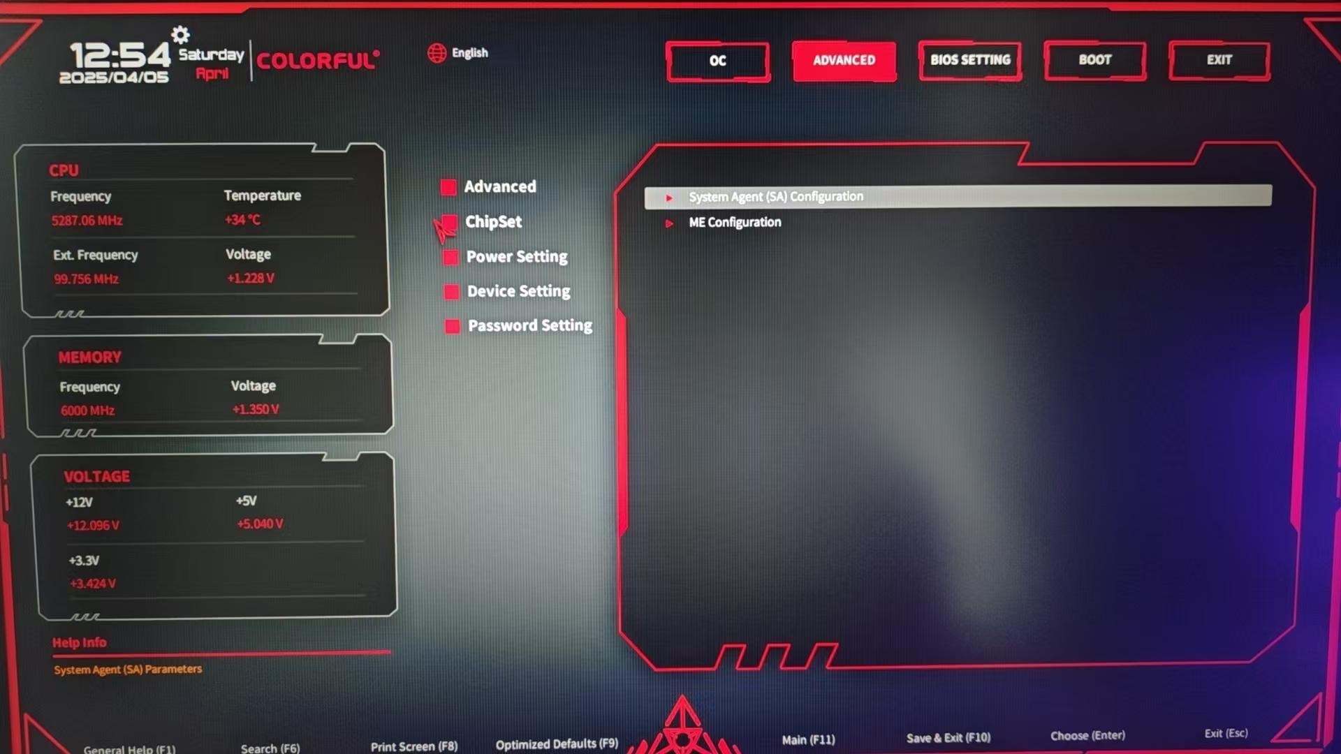 然后F11,进入高级设置,选择ChipSet(芯片组)