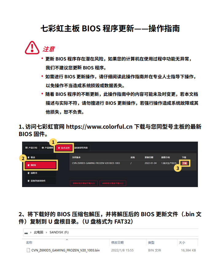 七彩虹主板更新BIOS 程序——操作指南
