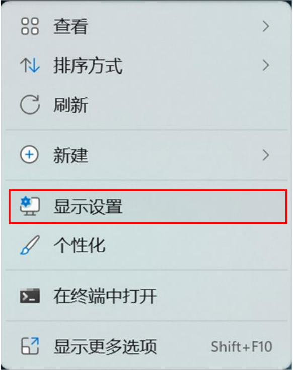 1.桌面空白处点鼠标右键,选择【显示设置】