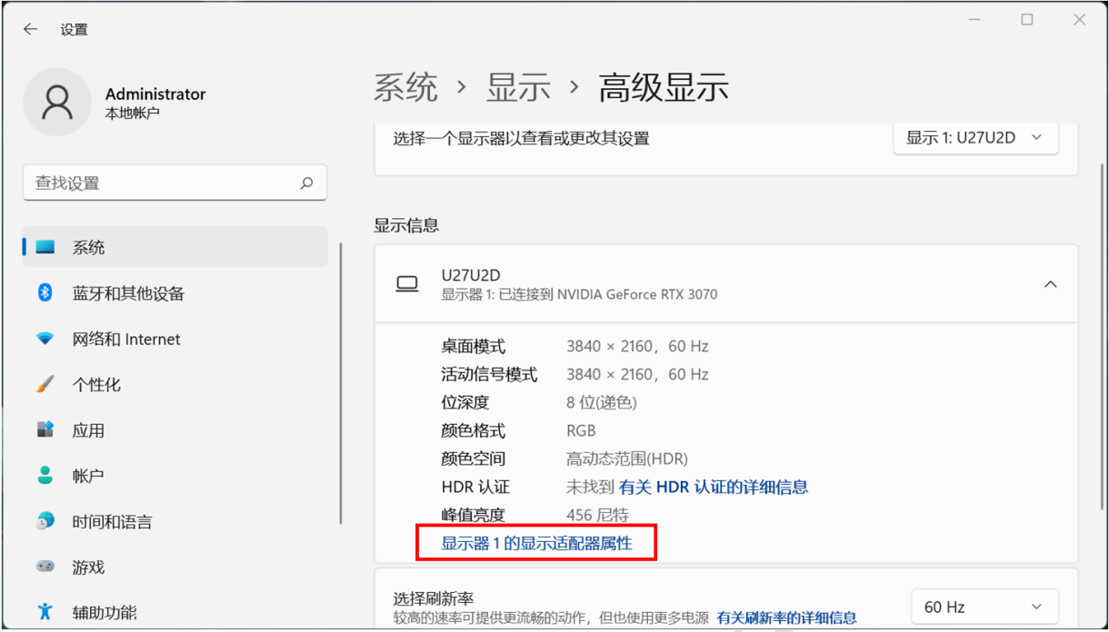 Win11系统属性提示“未找到有关 HDR 认证的相关信息”解决方案