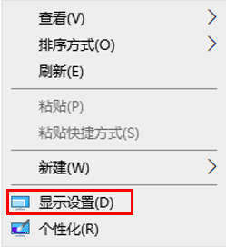 1.在桌面的空白处单击鼠标右键,点击【显示设置】