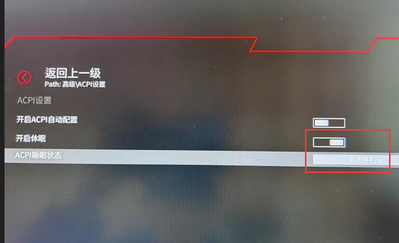 4.还需要在高级设置-ACPI设置里 将电脑休眠选项关闭