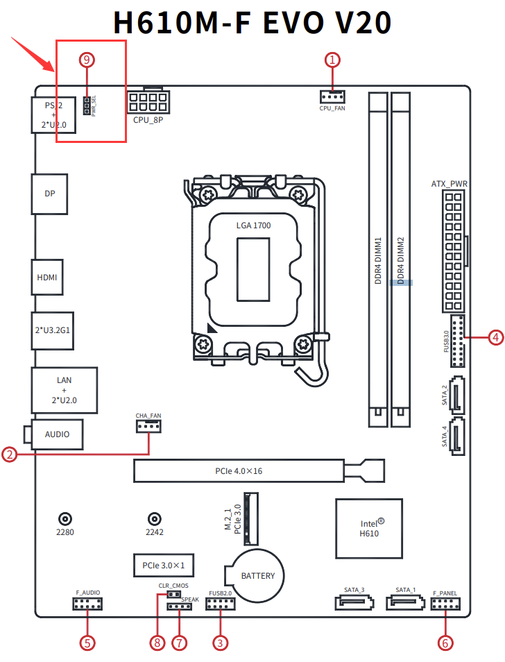 部分七彩虹主板 例如H610M主板 需要调整跳帽才能关闭USB带电功能