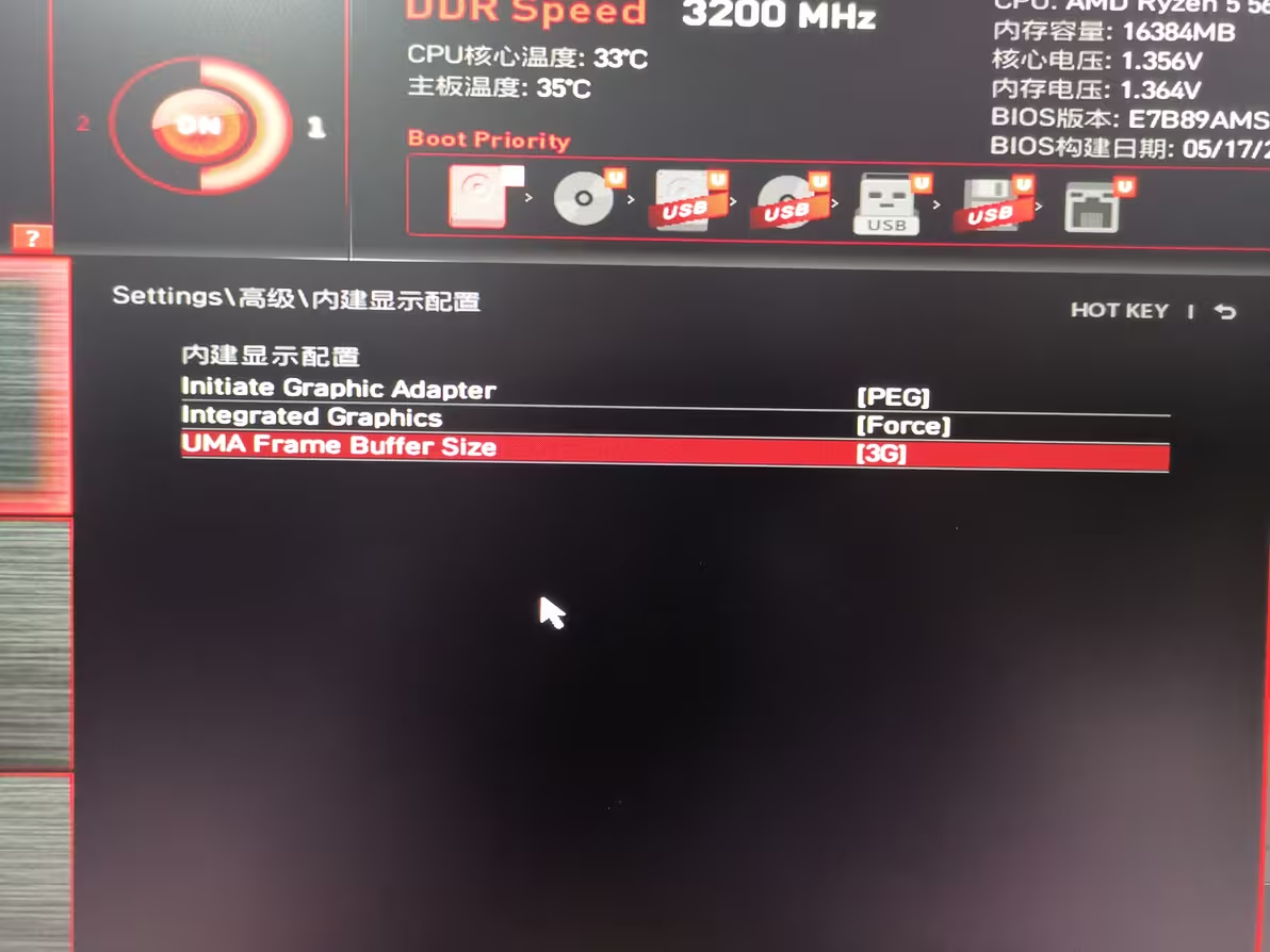 4、然后将UMA Frame Buffer Size 的大小调整下,根据自身需求调整到对应容量