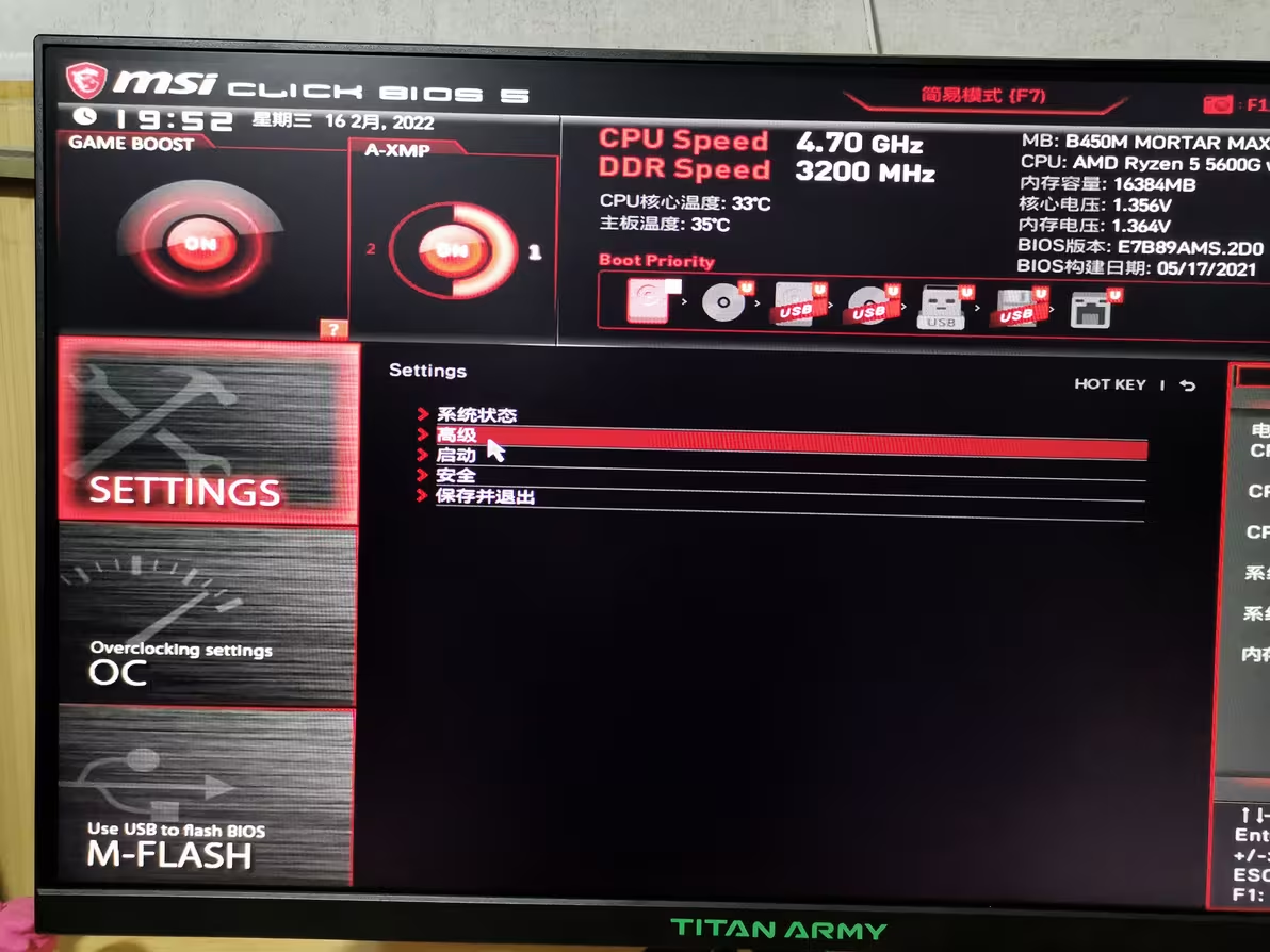 2、按F7进入高级模式,然后点击左边的“settings” ,进入 “高级” 选项